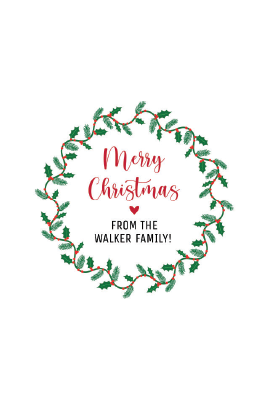 This template is perfect if you’re looking for a modern baby announcement. Just place your new baby photo inside a garland border on this template. The white background ensures your baby stands out. A festive wreath on the back encircles a Christmas greeting from your family.