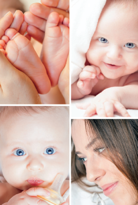 If you can’t choose between the cute baby photos, then this template lets you add several to a collage. The front has a simple striped pattern, and it provides plenty of space to introduce people to your newest addition. The back has four spots to upload photos.