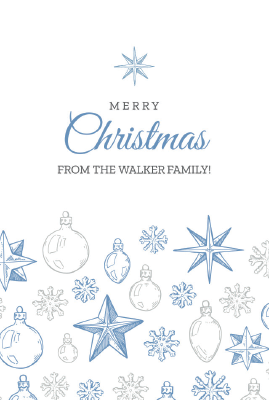 Sweet and simple, this template uses illustrated snowflakes, stars, and ornaments to create a subtle holiday vibe. Use customizable text areas to personalize the card with your baby’s details. Choose a blue, yellow, or peach color palette.