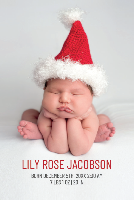 Send your Christmas birth announcements in the first two weeks of December. This ensures your cards will arrive before the holidays. But parenthood can be hectic. If you’re worried that your cards won’t arrive before Christmas, you can always send New Year’s cards to announce your new addition. Mail your New Year’s birth announcement cards towards the end of December—it’s okay if they arrive a little bit into the next year. If your baby was born in the fall, then the timing lines up perfectly. If your baby is already a few months old, you can still use holiday cards to share your exciting news. No one will be mad about receiving more cute baby photos.