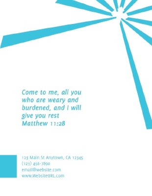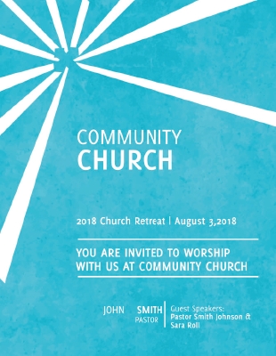 This simple flyer template lets your ministry speak for itself. Invite people to worship with your congregation either weekly or at a specific event. A cross within a sunrise adds an engaging graphic design element.