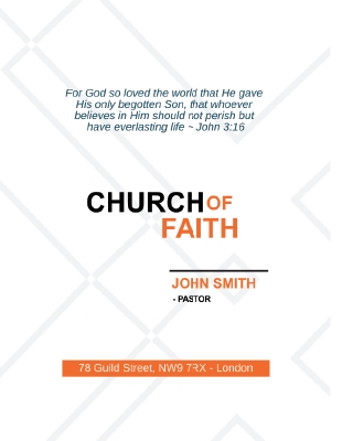 Bold and attention-grabbing, this bright orange flyer features a bright white cross that cuts across the 8.5” x 11” flyer template. Customize the text to promote your event. You can also promote your church’s social media accounts.