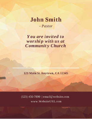 The geometric sunset design on this religious flyer is sure to catch people’s eyes. Add a Bible verse, your church address, and any other important ministry details in the custom text boxes.